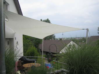 Unsere Sonnensegel mit Eckplatten und Randseilen garantieren eine homogene Flächenspannung und sind somit Formstabil auch bei stärkeren Winden.